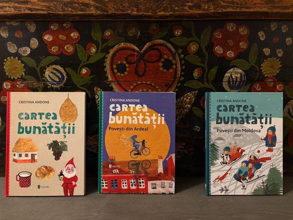 Ei bine Cristina Andone, căci despre capodopera ei este vorba, autoare de cărți pentru copii și înfăptuitoarea colecției Poveștile Muzicale, a cuprins toate aceste definițîi ale bunătățîi, cu penelul scrise și simțite, adunate din casă în casă, într-o carte. Cartea Bunătății, care poartă cu ea marca copilăriei, a tradiției, a valorilor eterne care fac parte din noi, oamenii de pretutindeni.